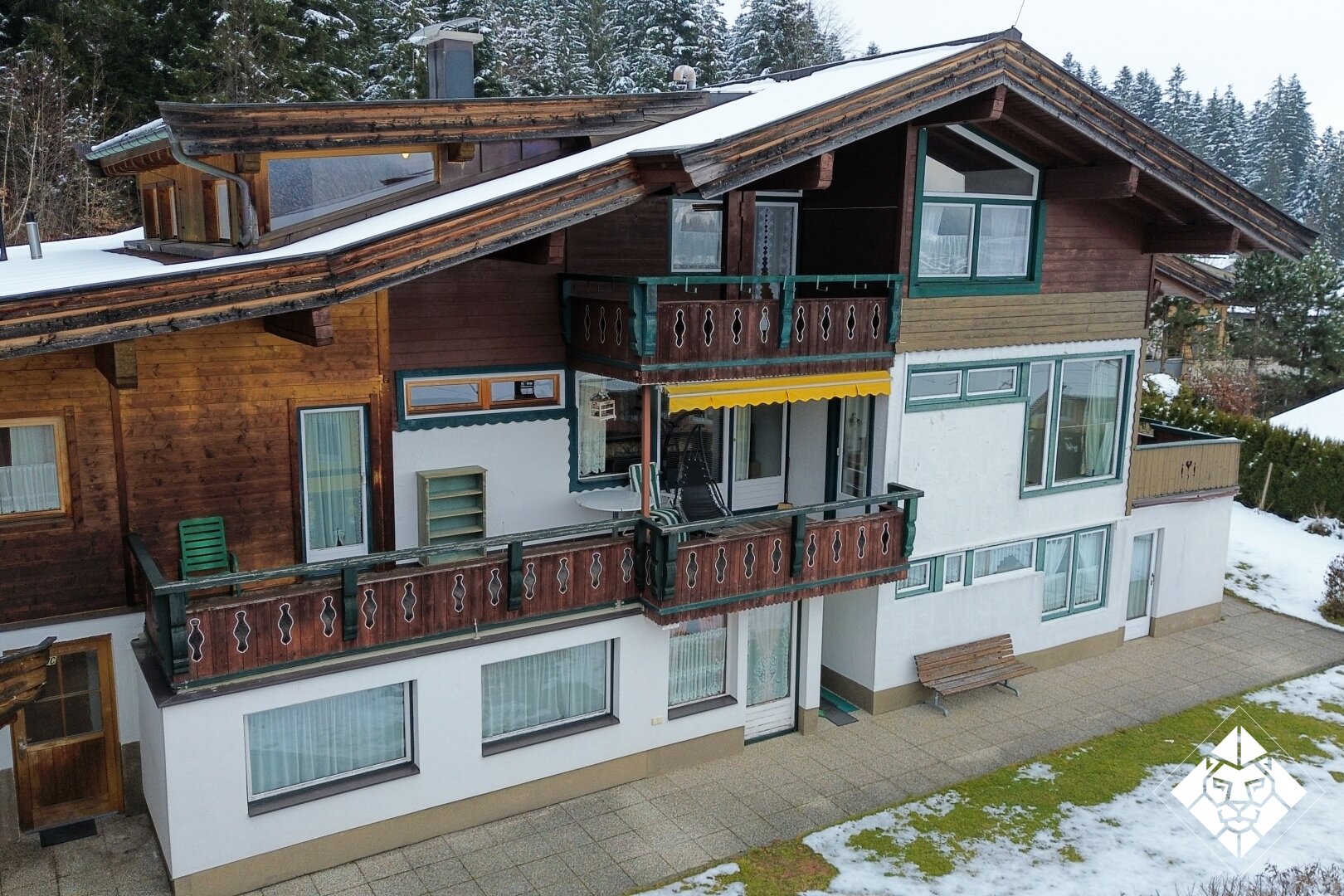 Diese einzigartige Immobilie besticht durch seine herausragende Lage am Waldrand auf der Sonnenseite des Wilden Kaisers. Als letztes Haus in einer ruhigen Sackgasse bietet es absolute Privatsphäre und einen unvergleichlichen Panoramablick.
